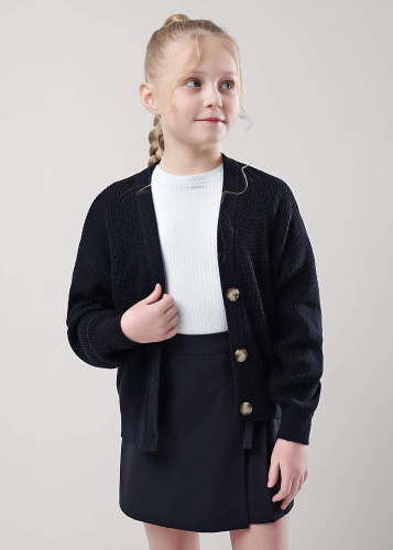 Стильный укороченный кардиган из хлопка с добавлением акрила. Трендовые оттенки, свободный силуэт, спущенная линия плеча, застежка на пуговицы. По горловине, низу рукавов и изделия эластичная вязка.