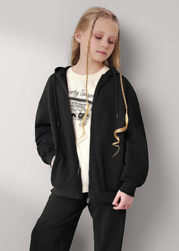 Вязаный жилет для девочки с V-образным вырезом горловины, из хлопковой пряжи с добавлением акрила. Горловина изделия украшена контрастной полосой.