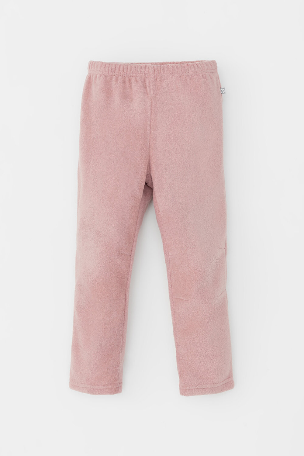 Однотонные детские брюки из флиса. Пояс на резинке. В области колена - вытачки. Брюки сохраняют цвет и форму после многократных стирок.