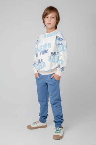 Трикотажные брюки для мальчика из петельчатого футера. Эластичный пояс на резинке регулируется по ширине с помощью шнурка, по бокам два удобных кармана, внизу эластичные манжеты. 100% хлопок