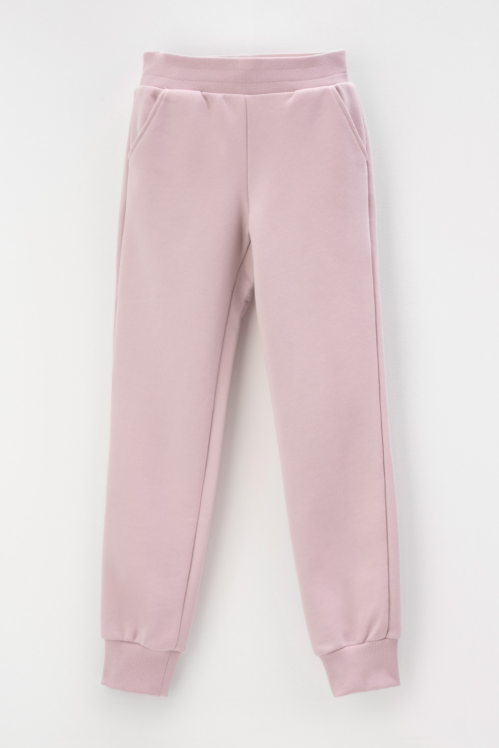Трикотажные брюки для девочки из футера с начёсом. В составе 80% натурального хлопка и 20% полиэстера, при этом полиэстер ввязан внутрь по особой технологии и не соприкасается с кожей. Эластичный пояс на резинке, по бокам два удобных кармана, внизу эластичные манжеты.