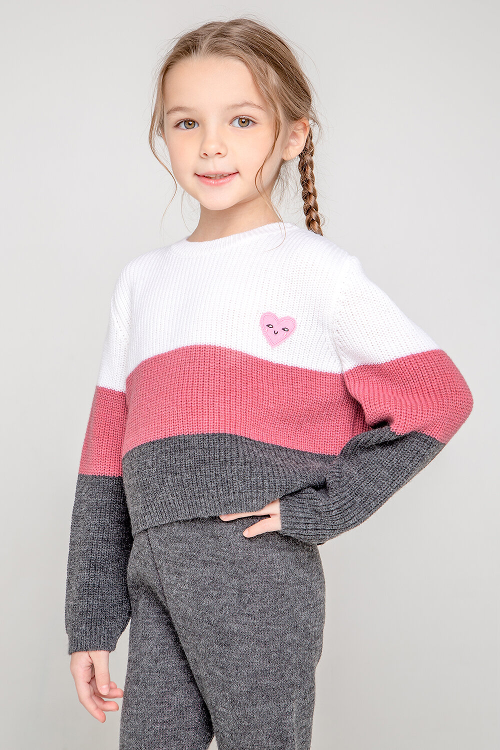 Теплый вязанный джемпер из полушерстяной пряжи в состав которой входит шерсть австралийского мериноса. Горловина, манжеты и низ изделия связаны ластиком.