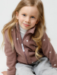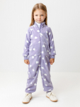 Флисовый комбинезон для девочки с высоким воротником. Застёгивается на удлинённую молнию с мягкой защитой шеи и подбородка. Рукава и низ изделия на манжетах из трикотажа в рубчик. Эластичная резинка по спинке обеспечивает идеальную посадку. Спереди удобный карман-кенгуру. Оригинальная набивка выполнена из стойких гипоаллергенных текстильных красителей. Комбинезон сохраняет цвет и форму после многократных стирок.