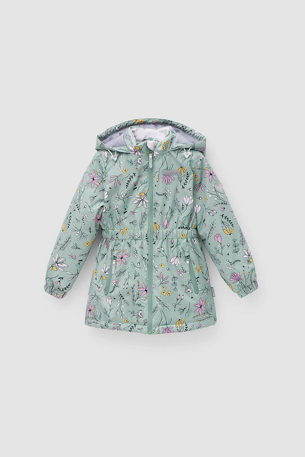 Демисезонная куртка для девочки с утеплителем Fellex®: 120 г/м2 . Выполнена из мембранной ткани с дополнительной тефлоновой обработкой. Данный вид обработки предохраняет изделие от загрязнения и лучше отводит влагу. Подклад из 100% полиэстера. У изделия предусмотрена защита подбородка. Несъемный капюшон регулируется с помощью эластичного шнура со стопперами. Низ рукавов и пояс изделия имеют эластичную резинку для лучшего прилегания. Во всех изделиях верхнего ассортимента для безопасности ребенка предусмотрены светоотражающие элементы.