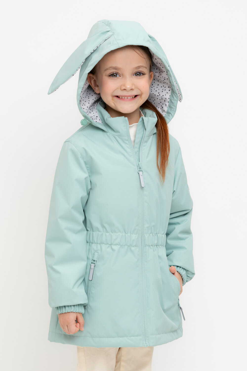 Демисезонная куртка для девочки с утеплителем Слайтекс Найс®: 120 г/м2. Выполнена из мембранной ткани с дополнительной тефлоновой обработкой. Данный вид обработки предохраняет изделие от загрязнения и лучше отводит влагу. Подклад из 100% полиэстера. У изделия предусмотрена защита подбородка. Несъемный капюшон регулируется с помощью эластичной утяжки со стопперами. Низ рукавов и пояс изделия имеют эластичную резинку для лучшего прилегания. По бокам два кармана на молнии. Во всех изделиях верхнего ассортимента для безопасности ребенка предусмотрены светоотражающие элементы.