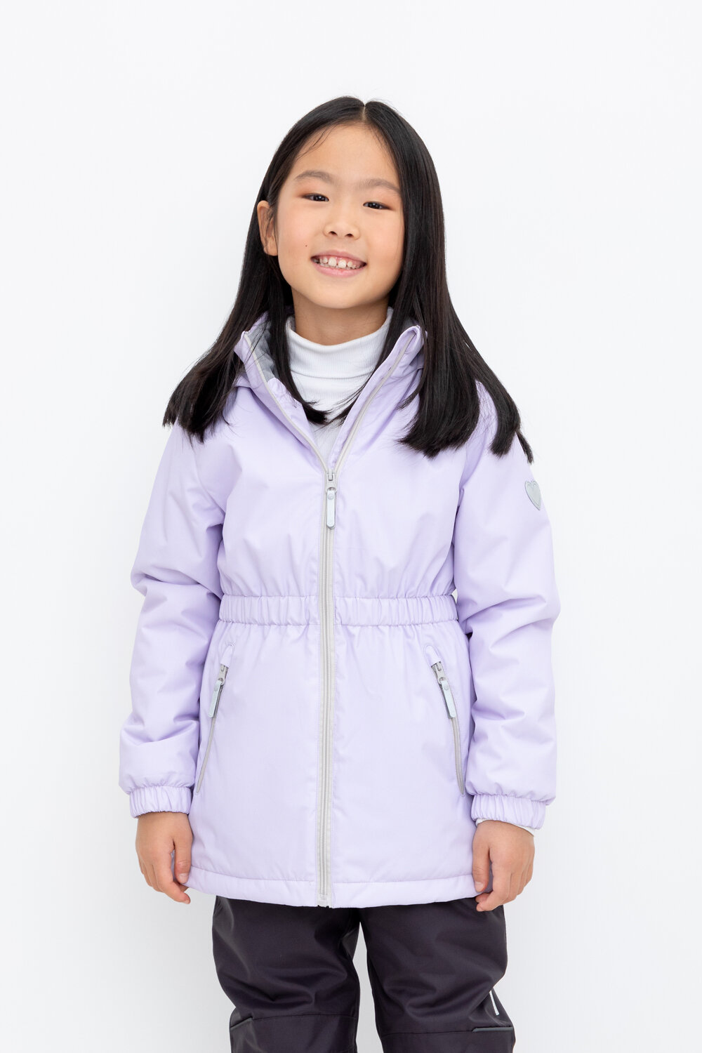 Демисезонная куртка для девочки с утеплителем SEE®: 120 г/м2. Выполнена из мембранной ткани с дополнительной тефлоновой обработкой. Данный вид обработки предохраняет изделие от загрязнения и лучше отводит влагу. Подклад из 100% полиэстера. У изделия предусмотрена защита подбородка. Несъемный капюшон регулируется с помощью эластичного шнура со стопперами. Низ рукавов и пояс изделия имеют эластичную резинку для лучшего прилегания. Во всех изделиях верхнего ассортимента для безопасности ребенка предусмотрены светоотражающие элементы.
