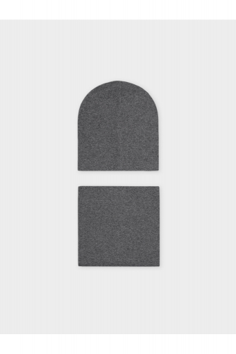 Комплект для мальчика: шапка и снуд из хлопкового трикотажа в рубчик с добавлением эластана, окрашенного стойкими гипоаллергенными текстильными красителями. Изделия хорошо тянутся, после многократных стирок сохраняют цвет и форму.