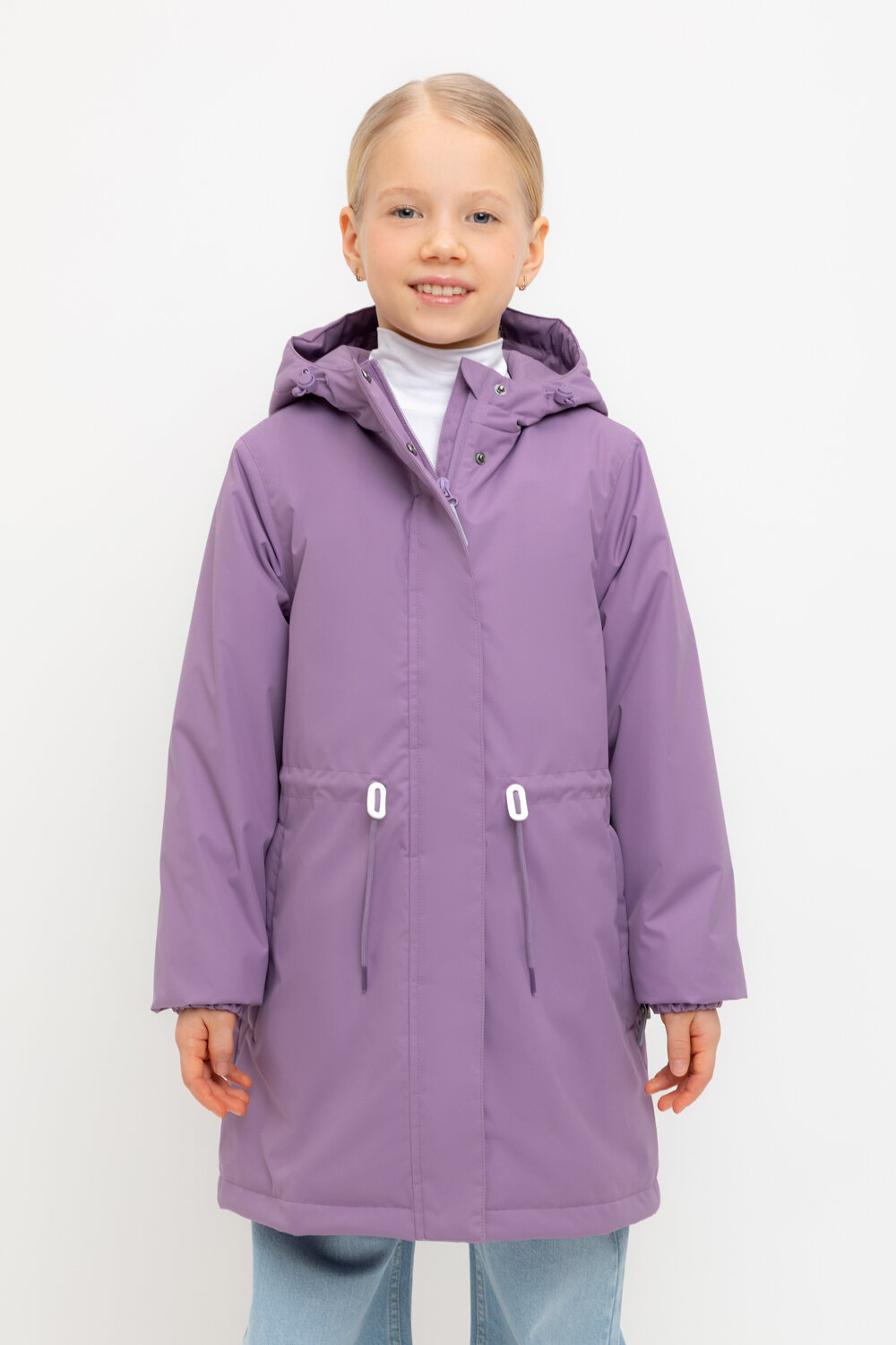Демисезонное пальто для девочки с утеплителем Слайтекс Найс®: 120 г/м2. Выполнено из мембранной ткани с дополнительной тефлоновой обработкой. Данный вид обработки предохраняет изделие от загрязнения и лучше отводит влагу. Подклад из 100% полиэстера. У изделия предусмотрена защита подбородка. Несъемный капюшон имеет утягивающий шнур со стопперами. На рукавах эластичные манжеты. На талии регулирующая утяжка со стопперами. Во всех изделиях верхнего ассортимента для безопасности ребенка предусмотрены светоотражающие элементы.
