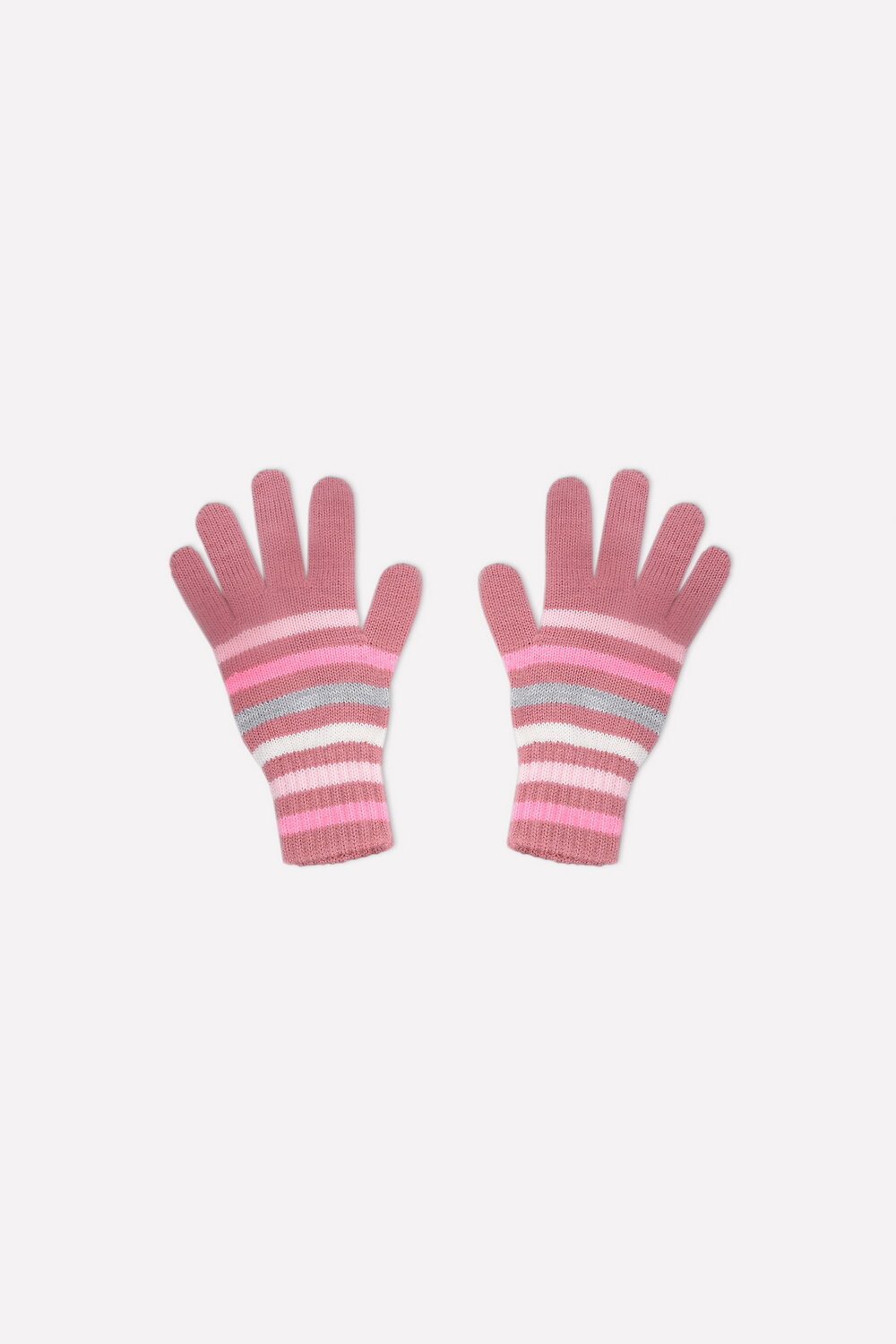 Полосатые перчатки из полушерстяной пряжи. Широкие манжеты крепко фиксируют перчатку на руке.