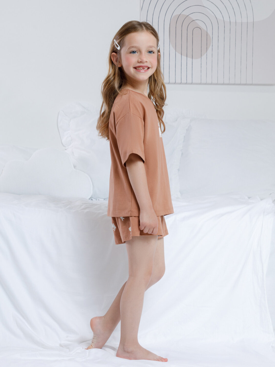 Трикотажная пижама из натурального хлопка для комфортного сна и отдыха. Футболка с короткими спущенными рукавами и шорты с мягкой эластичной резинкой в поясе. Оригинальная набивка и принт выполнены из стойких текстильных гипоаллергенных красителей. Изделие сохраняет цвет и форму после многократных стирок. Все трикотажные полотна производятся в соответствии с нормами швейцарского сертификата ЭкоТекс.