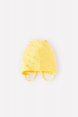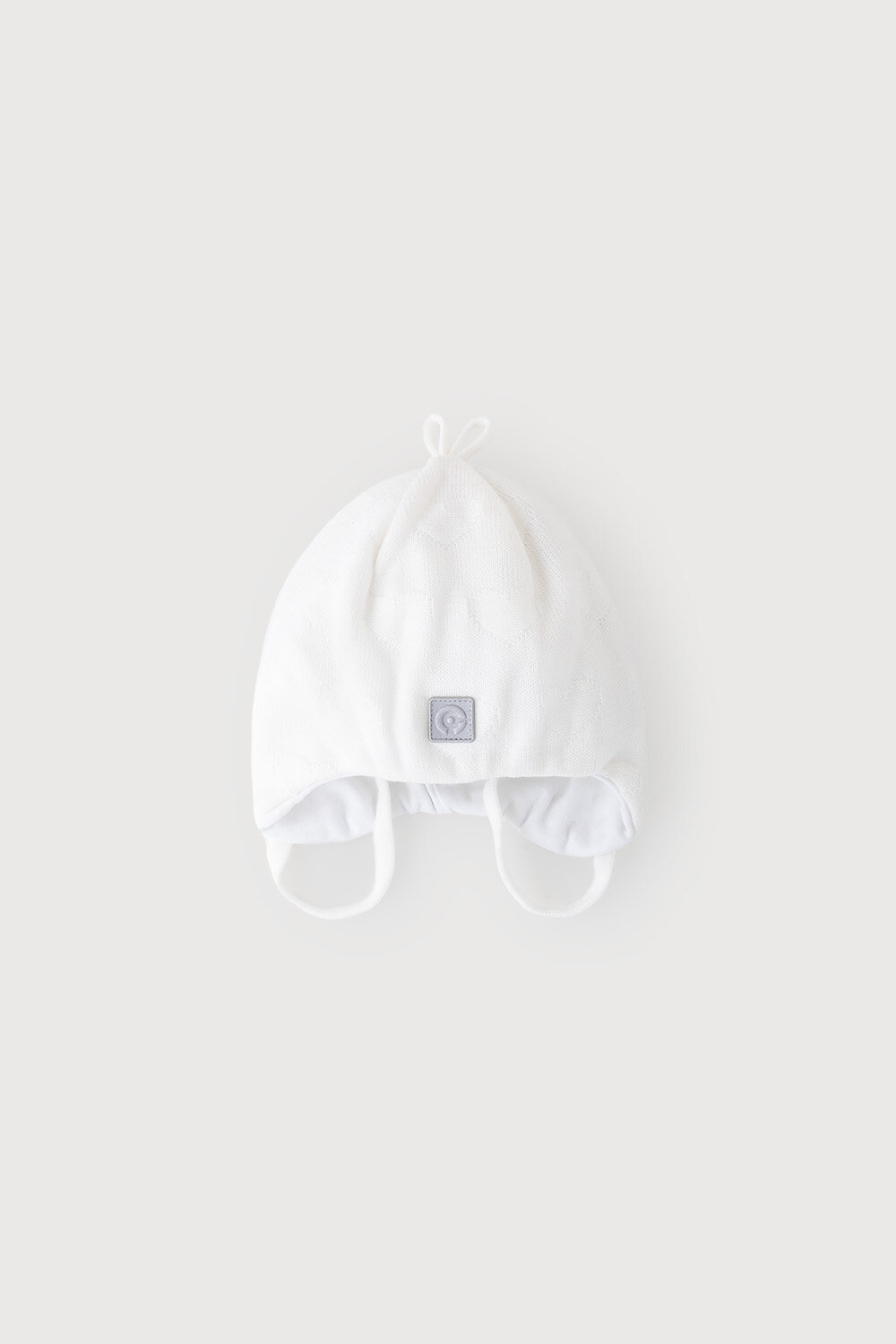 Шапка на завязках из акриловой пряжи с вывязаными сердечками. Мягкий трикотажный подклад из интерлока. Для безопасности в тёмное время суток на передней части шапочки предусмотрена светоотражающая нашивка. На макушке - петелька-бантик.