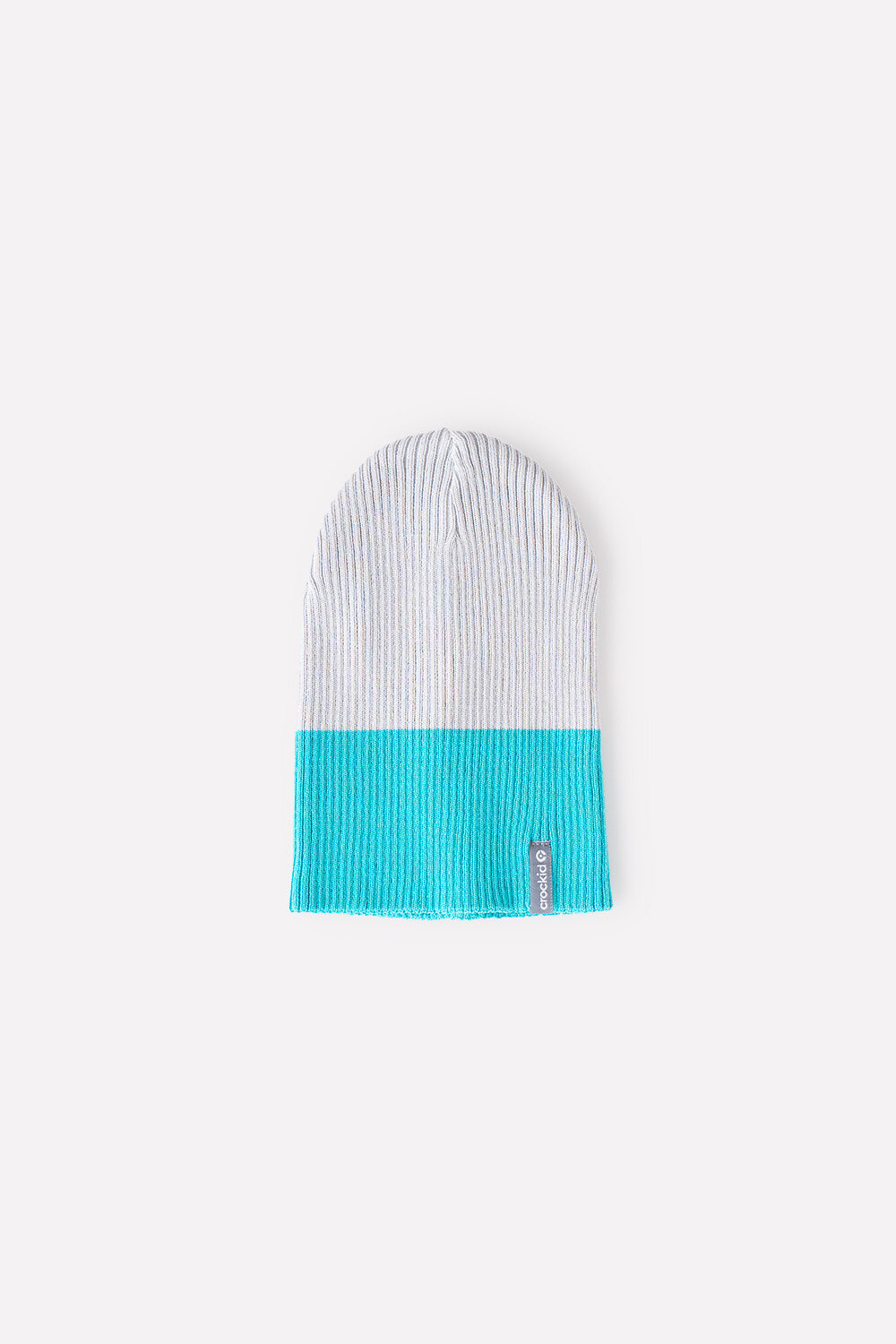 Двойная шапка из хлопковой пряжи. Украшена жаккардовой ленточкой с названием бренда CROCKID.