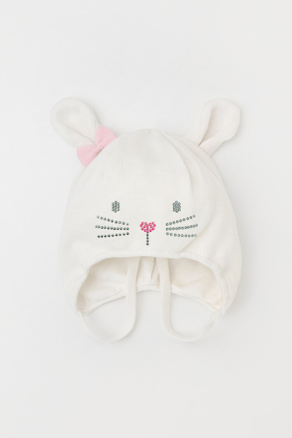 Демисезонная шапка для девочки с декоративными ушками из смесовой пряжи с добавлением высококачественного гребенного хлопка. Мягкий хлопковый подклад из трикотажного полотна интерлок. Комфортное прилегание, высококачественные материалы обеспечивают защиту от холода и хороший теплообмен. Декоративные элементы в виде страз надежно зафиксированы на изделии что позволяет выдерживать многократные стирки.
