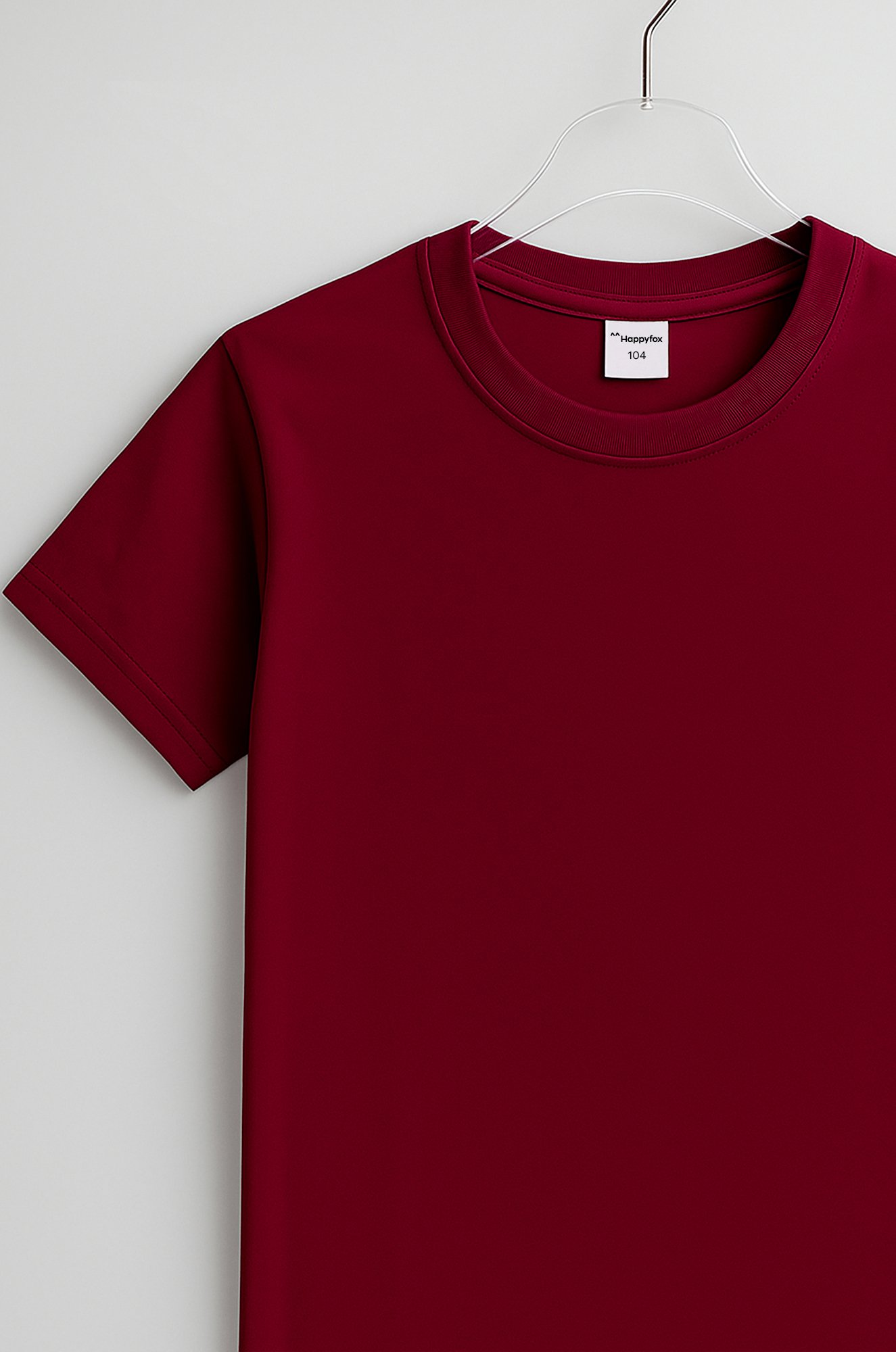 Бордовая футболка для девочек и мальчиков станет стильным акцентом! Базовая детская футболка выполнена из 100% хлопка.