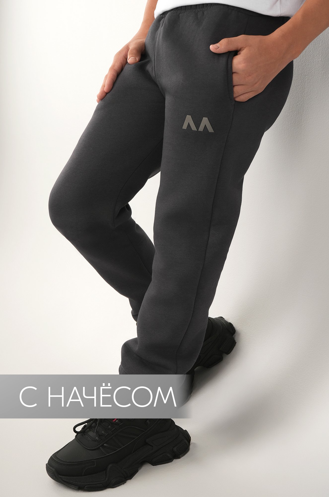 Теплые брюки джоггеры для мальчиков и подростков выполнены из мягкого футера с начёсом. Утепленные штаны антрацитового цвета дополнены декоративной нашивкой с брендовым логотипом.