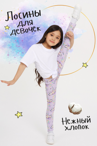 Детские лосины для юных модниц. Идеальны для спортивных занятий, для прогулок и на повседнев. Цвет: сиреневый; Материал: кулирка с лайкрой;кулирка с лайкрой; Состав: 95% Хлопок, 5% Лайкра.