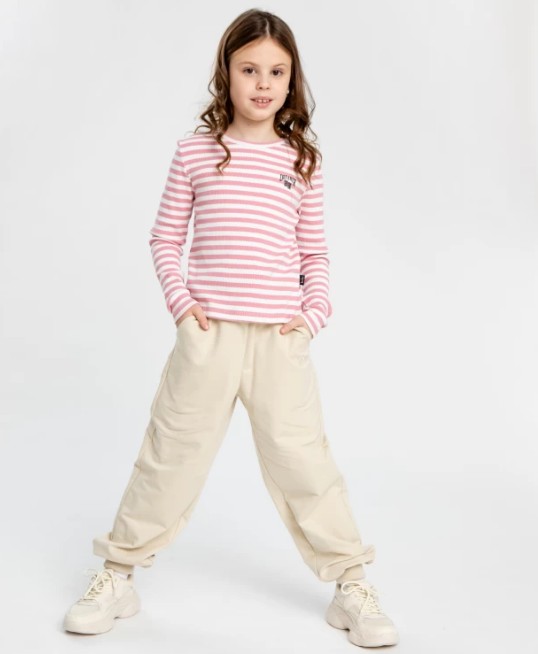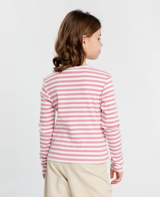Лонгслив в полоску в рубчик. Милый предмет гардероба с налётом барбикора и идеальный выбор для повседневных комфортных образов. Полоска - это стиль, универсальность и лёгкость в сочетаниях. Это правило знает любая модница. Такой лонг позволит составить модные образы за считанные минуты, комбинируя его с джоггерами, джинсами или юбками. Он выполнен из хлопка с добавлением эластана, что даёт мягкость, комфорт, свободу движений. Плюс ко всему, за трикотажем легко ухаживать. Прорезиненная нашивка спереди добавляет изюминку. Бело-розовая полоска придает образу нежности.