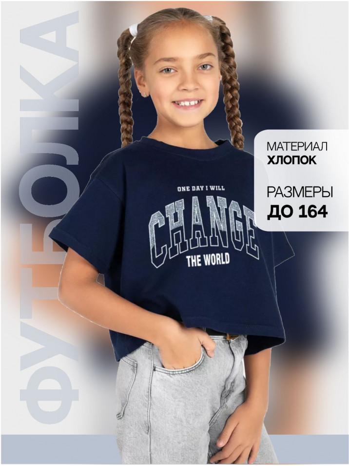 Стильная футболка для девочки с современным принтом в стиле оверсайз. Широкий размерный ряд охватывает разные возраста детей от дошкольников до школьников подростков или на возраст 6, 7, 8, 9, 10, 11, 12, 13 и 14 лет. Футболка классического прямого кроя с короткими рукавами и круглым вырезом горловины. Детская футболка на каждый день на прогулку, дачу, в садик, для дома, в школу. Удобная длина позволяет носить футболку заправленной и навыпуск . Отлично сочетается с шортами, джинсами, брюками, юбками. Модная хлопковая футболка, материал приятен на ощупь, позволяет телу дышать, при бережном уходе не дает усадку и не деформируется. Принт яркий и долговечный, напечатан по современным технологиям гипоаллергенной безопасной для кожи краской. Отличный подарок для девочки на день рождения и без повода. Синий