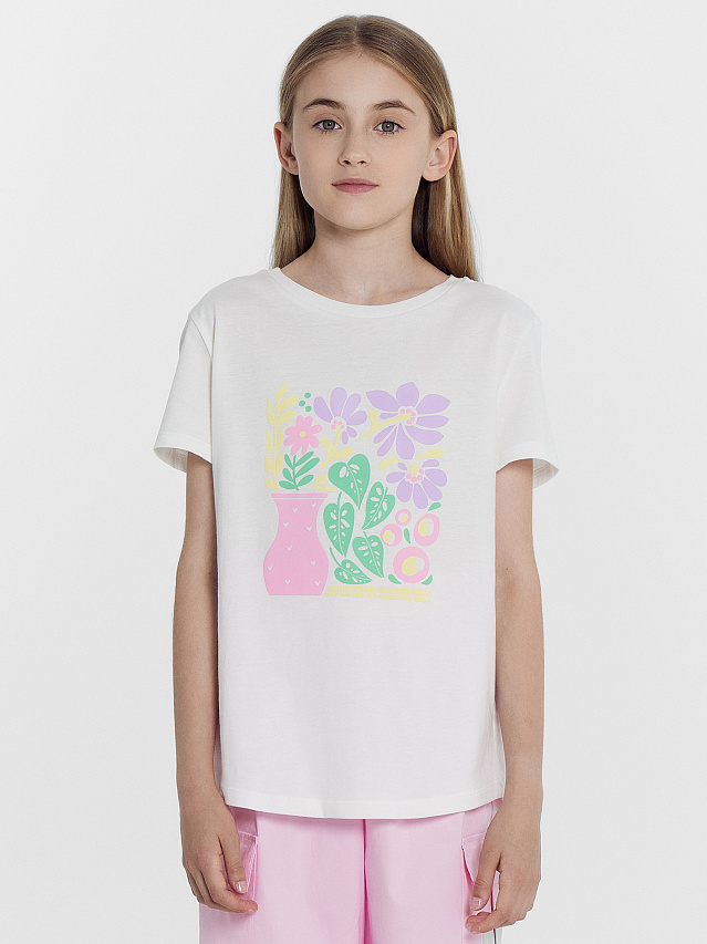 Футболка для девочек из высококачественного хлопка. Ткань мягкая, легкая и эластичная, не сковывает движения, комфортная в носке. Длина до середины бедер, свободный прямой силуэт, горловина круглая, рукава короткие. Сохраняет свой насыщенный цвет и качество даже после многократных стирок. Обладает хорошей устойчивостью к выцветанию и отлично держит форму. Футболка для девочек подойдет для детского сада, активных игр, занятий спортом, прогулок и путешествий. Отличный выбор для детей от Mark Formelle на каждый день!