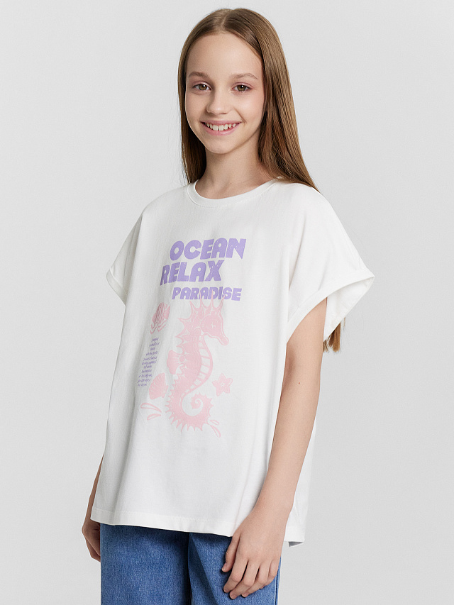 Футболка для девочек белая с принтом и надписью "relax ocean paradise"