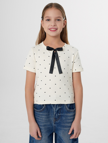 Бежевая футболка для девочек с декоративным бантиком — это нежный акцент в детском гардеробе. Она выполнена из мягкой эластичной рибаны, которая бережно облегает фигуру, обеспечивая комфорт и свободу движений.