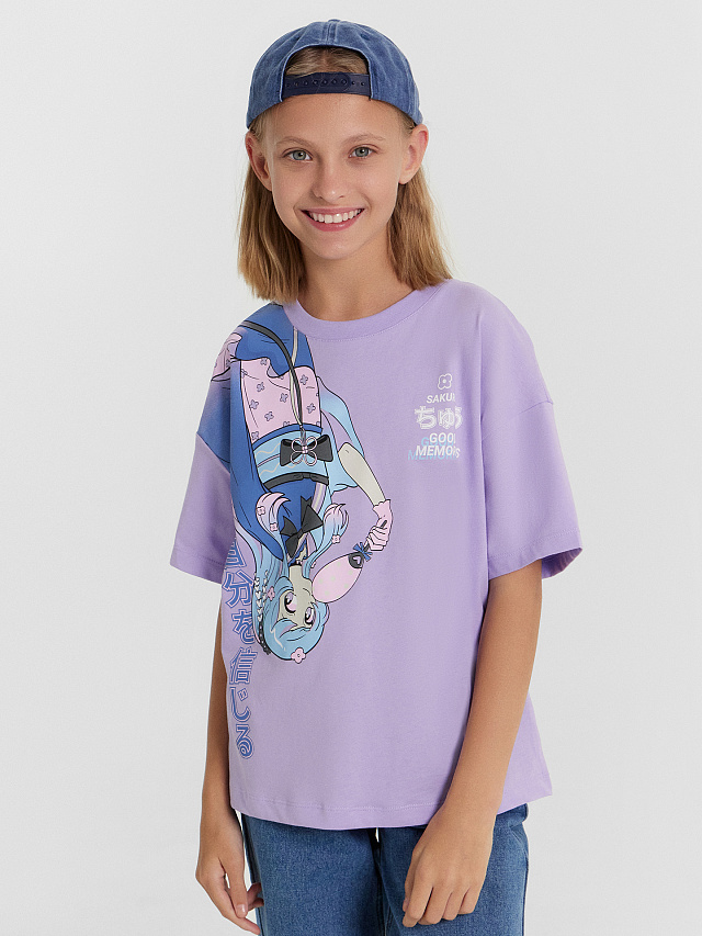 Футболка для девочек из высококачественного 100% хлопка c печатью в виде аниме и надписи "Good memories / Хорошие воспоминания". Ткань мягкая, легкая и эластичная, не сковывает движения, комфортная в носке. Длина до середины бедер, свободный силуэт, горловина круглая, спущенная линия плеча, рукава до локтя. Сохраняет свой насыщенный цвет и качество даже после многократных стирок. Обладает хорошей устойчивостью к выцветанию и отлично держит форму. Футболка подойдет для детского сада, активных игр, занятий спортом, прогулок и путешествий. Отличный выбор для детей от Mark Formelle на каждый день!