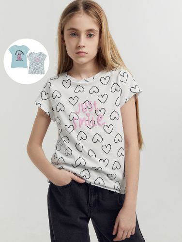 Футболка для девочек мультипак (2 шт.) в голубом цвете с сердечками