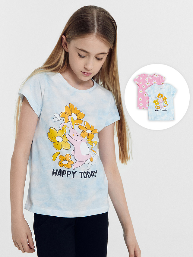 Футболка для девочек мультипак (2 шт.) из высококачественного 100% хлопка. В наборе розовая футболка с принтом в виде ромашек и голубая футболка с принтом "тай-дай". Ткань мягкая, легкая и эластичная, не сковывает движения, комфортная в носке. Длина до середины бедер, свободный прямой силуэт, горловина круглая, рукава короткие. Сохраняют свой насыщенный цвет и качество даже после многократных стирок. Обладают хорошей устойчивостью к выцветанию и отлично держат форму. Набор футболок для девочек подойдет для детского сада, активных игр, занятий спортом, прогулок и путешествий. Рекомендуем!