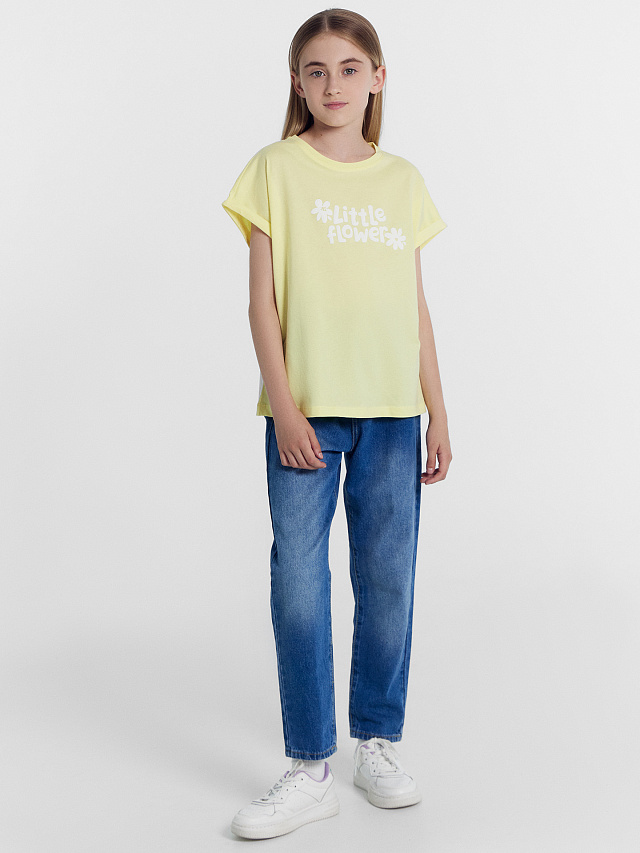 Футболка для девочек желтая с печатью