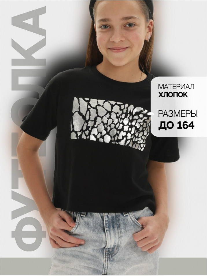 Стильная футболка для девочки с современным принтом в стиле оверсайз. Широкий размерный ряд охватывает разные возраста детей от дошкольников до школьников подростков или на возраст 6, 7, 8, 9, 10, 11, 12, 13 и 14 лет. Футболка  классического прямого кроя с короткими рукавами и круглым вырезом горловины. Детская футболка на каждый день на прогулку, дачу, в садик, для дома, в школу. Отлично сочетается с шортами, джинсами, брюками, юбками. Модная хлопковая футболка, материал приятен на ощупь, позволяет телу дышать, при бережном уходе не дает усадку и не деформируется. Принт яркий и долговечный, напечатан по современным технологиям гипоаллергенной безопасной для кожи краской. Отличный подарок для девочки на день рождения и без повода. Черный