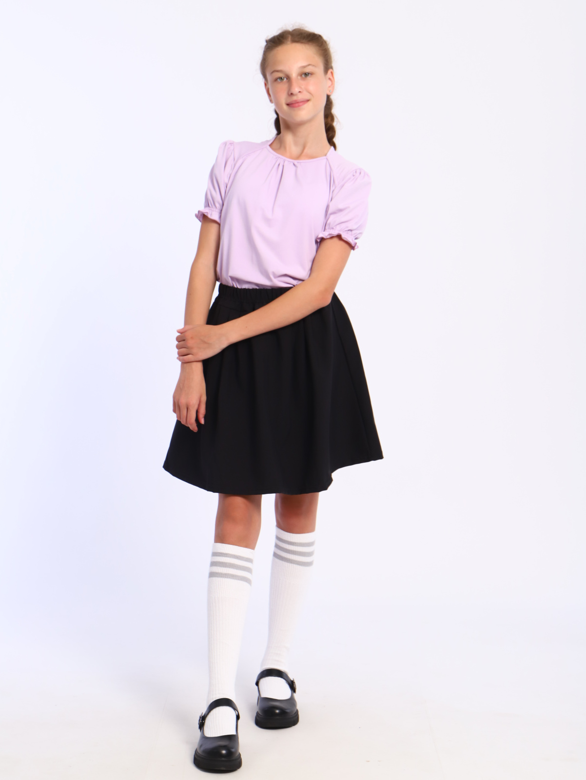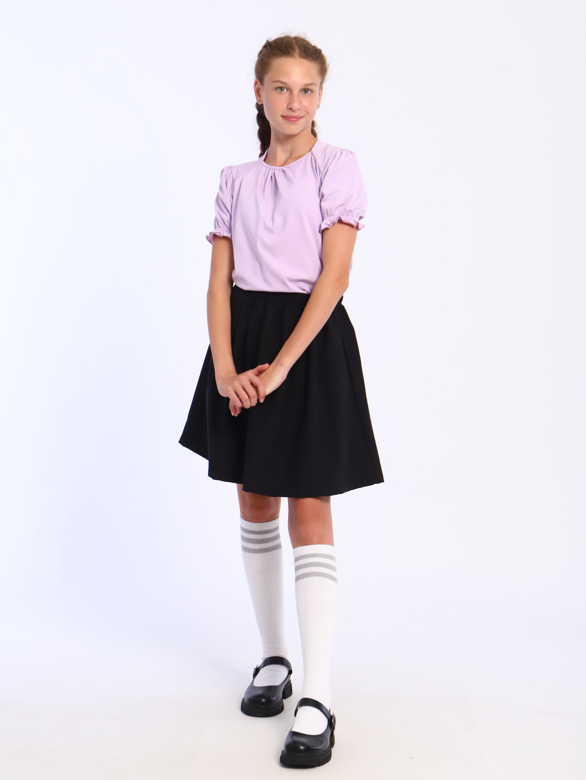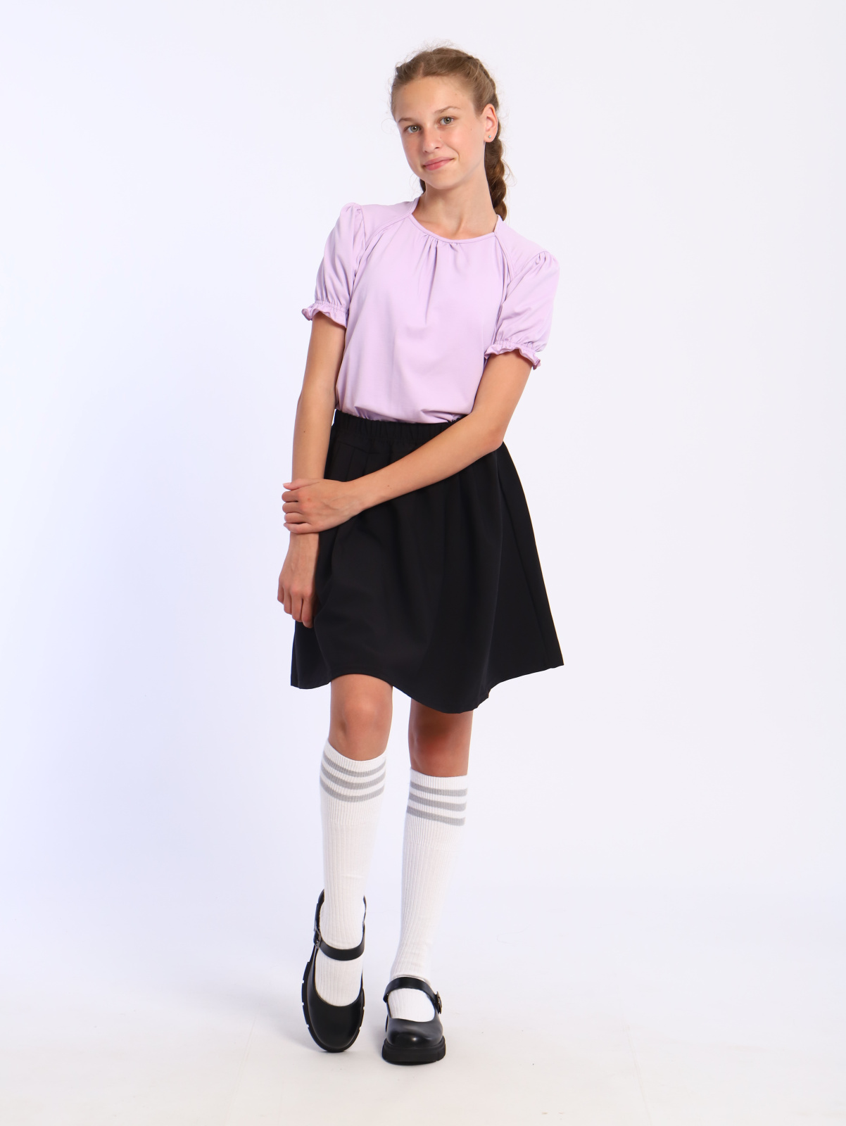 Детская блузка свободного кроя, с круглой горловиной со сборкой и с короткими рукавами