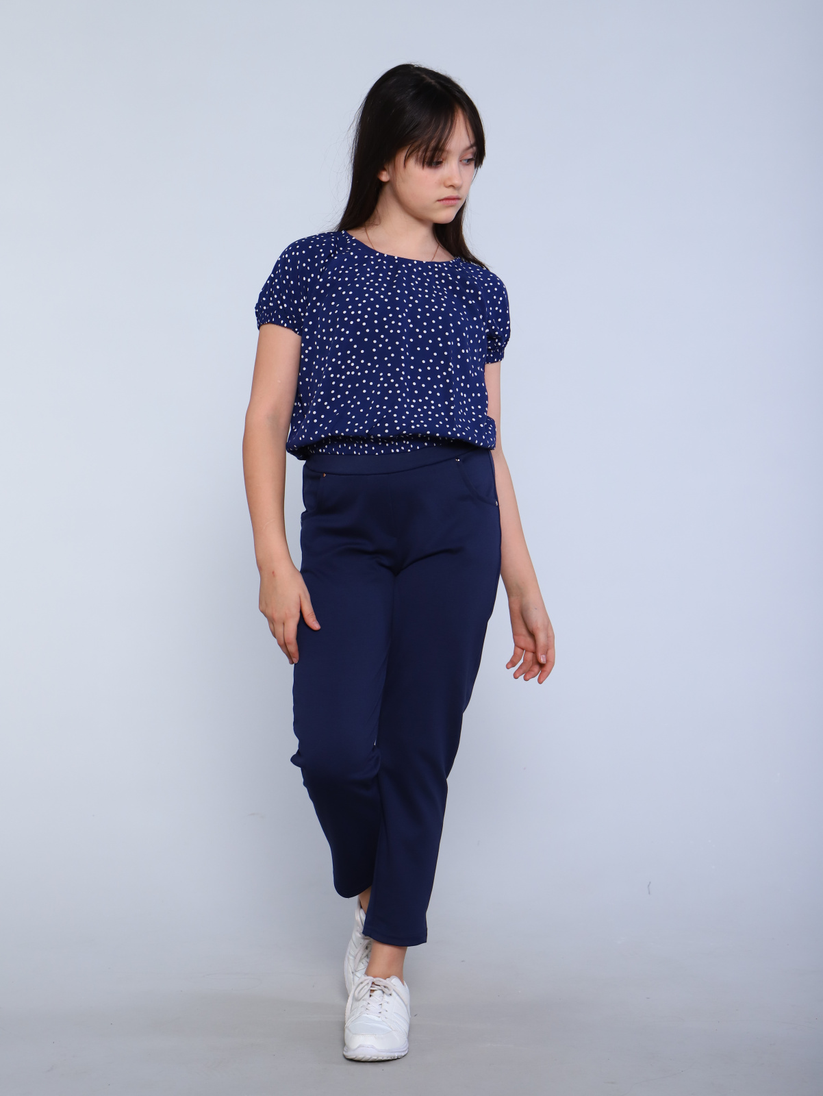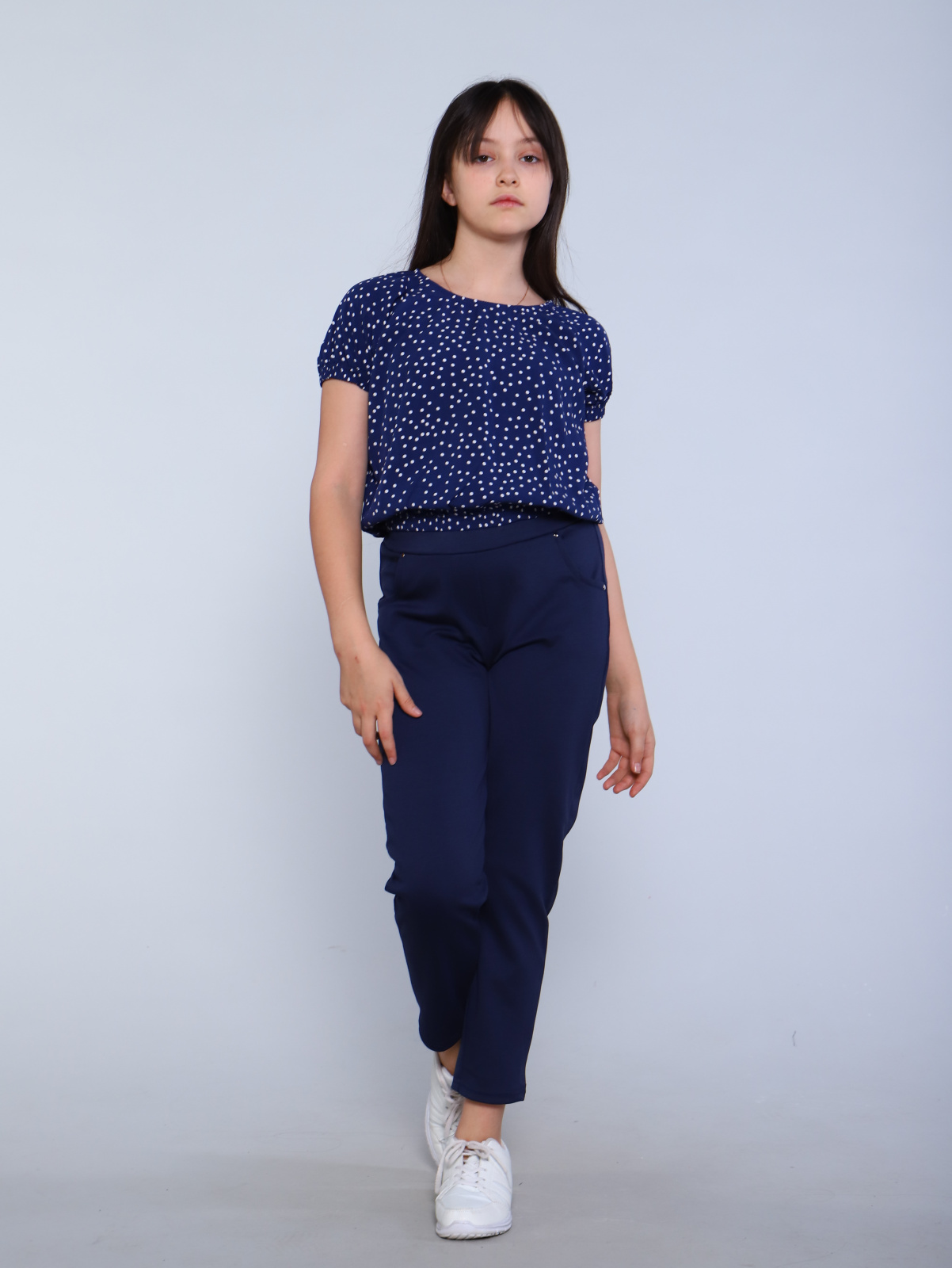 Подростковая майка сшита из легкой ткани-штапель. Укороченный топ с резинкой на поясе, отлично сидит по фигуре.