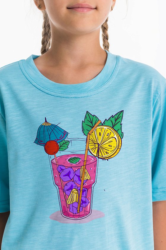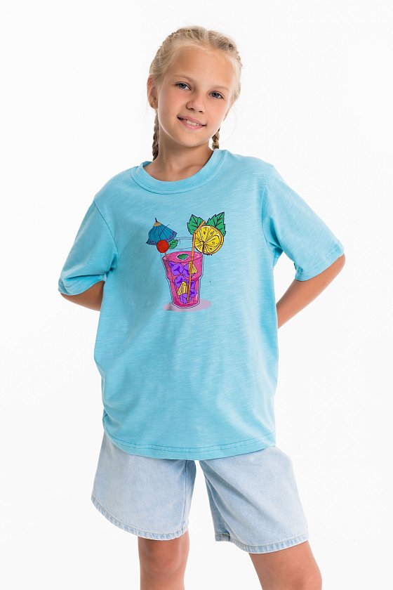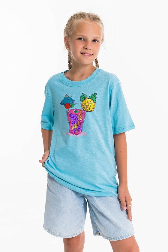 Детская футболка с принтом изготовлена из хлопкового полотна, что обеспечивает комфорт и хорошую воздухопроницаемость. Футболка имеет короткий рукав и круглый вырез горловины, что придает ей классический стильный вид. Такая модель футболки отлично сочетается с джинсами, брюками или юбкой. Изготовленная из натуральной ткани, футболка обеспечит комфорт в течение всего дня.