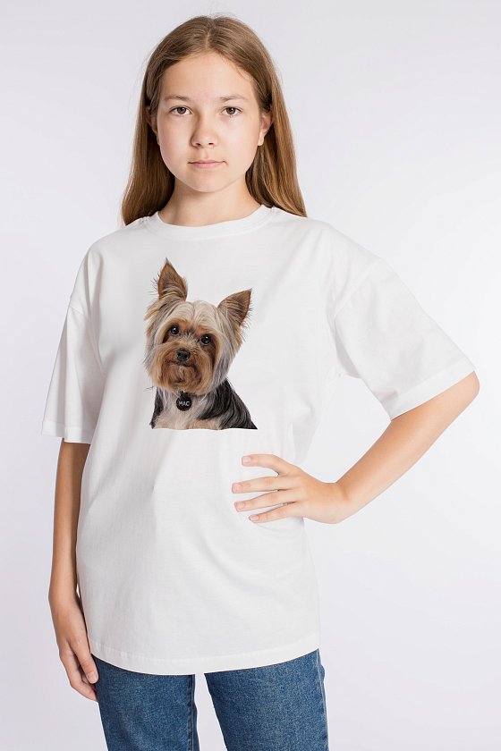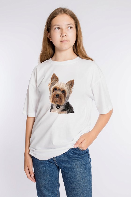 Детская футболка с принтом изготовлена из хлопкового полотна - что обеспечивает комфорт и хорошую воздухопроницаемость. Футболка имеет короткий рукав и круглый вырез горловины, что придает ей классический стильный вид. Такая модель футболки отлично сочетается с джинсами или брюками. Изготовленная из натуральной ткани, футболка обеспечит комфорт в течение всего дня.