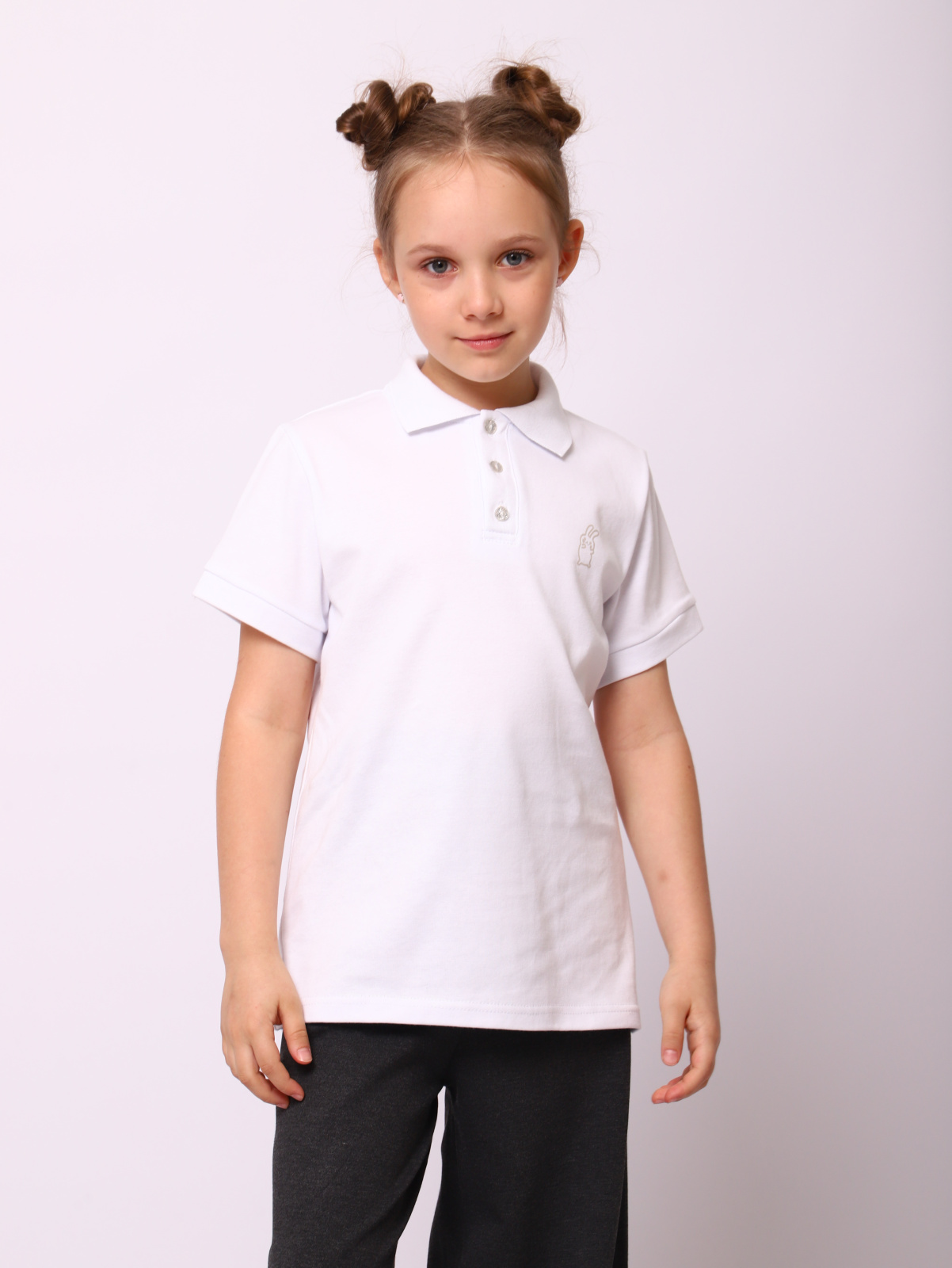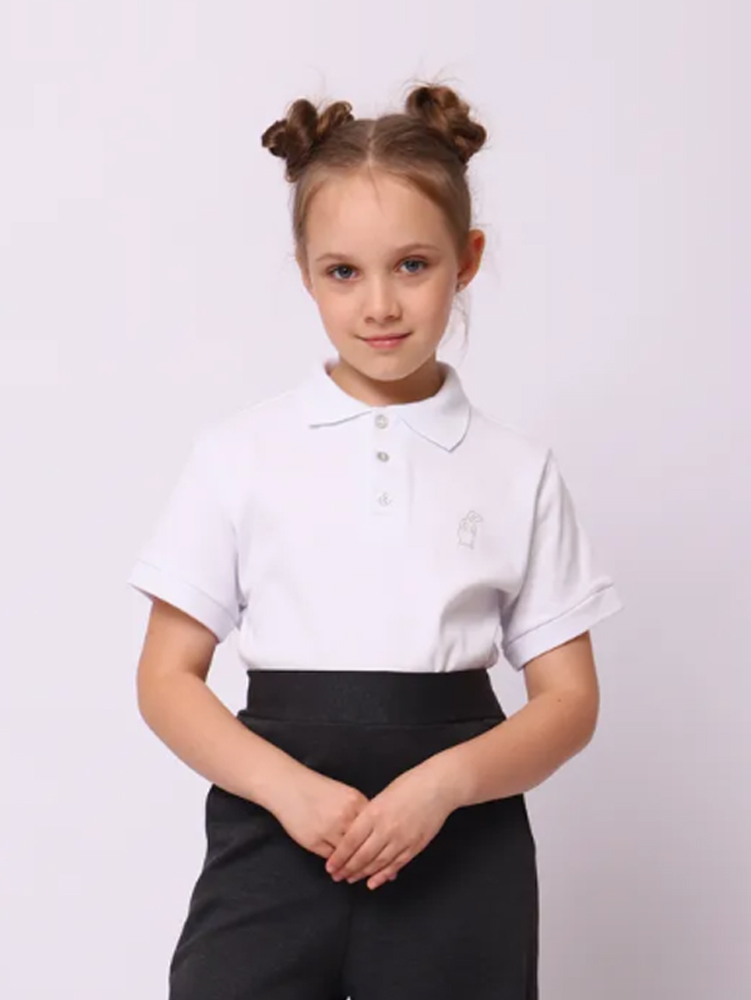 Школьная рубашка поло для девочки с коротким рукавом - важный элемент гардероба любой школьницы. Футболка поло для девочки сшита из качественного натурального трикотажного полотна. Футболка поло для девочки подростка тянется, приятен на ощупь и подарит ребенку комфорт в течение всего дня. Отложной воротничок делает поло для девочки в школу подростка строгим. Однотонное поло для девочек белые хорошо подойдут  в качестве одежды для школы детям и подросткам.  Лонгслив обтягивающий для девочек школьниц это отличный базовый вариант белого  школьного лонгслив для подростка! Эластичный высококачественный трикотаж кофты на девочку не стесняет движений. Натуральный состав поло для подростка девочки  обеспечивает комфорт на уроках и во время прогулок.  подросткового  поло с манжетами. На груди поло школа вышивка - заяц. Школьный лонгслив идеально подойдет в качестве школьной формы и  для прогулок. Идеально для праздников, а также для дома и отдыха. Футболка поло детская это отличный подарок для подростков . Подростковая школьная рубашка  нежно облегает фигуру девочки, подчеркивая ее. Поло для девочки в школу с коротким рукавом сшито  в традиционной цветовой гамме - белого цвета. Школьная одежда должна быть комфортной и удобной как эта кофта  девочек. Футболка с воротником для девочки пригодится и в жару, как летняя одежда для девочки.  Кофта для девочки подростка с коротким рукавом очень удобна как внутренний слой под пиджак, каккет или кардиган. Современная школьная форма для девочки подростка может сочетать в себе разные стили от классического до спортивного. В этом смысле кофточка для девочки универсальна. Кофта для подростка девочки прекрасно сидит на фигуре. Длина кофты школьной для девочки позволяет заправить ее в брючки или юбочку.  Школьная форма для девочек  обладает удобным кроем. Форма школьная для девочки универсальна удобна практична. Лонгслив для девочки подростка благодаря повышенной плотности материала имеет высокую износоустойчивость.