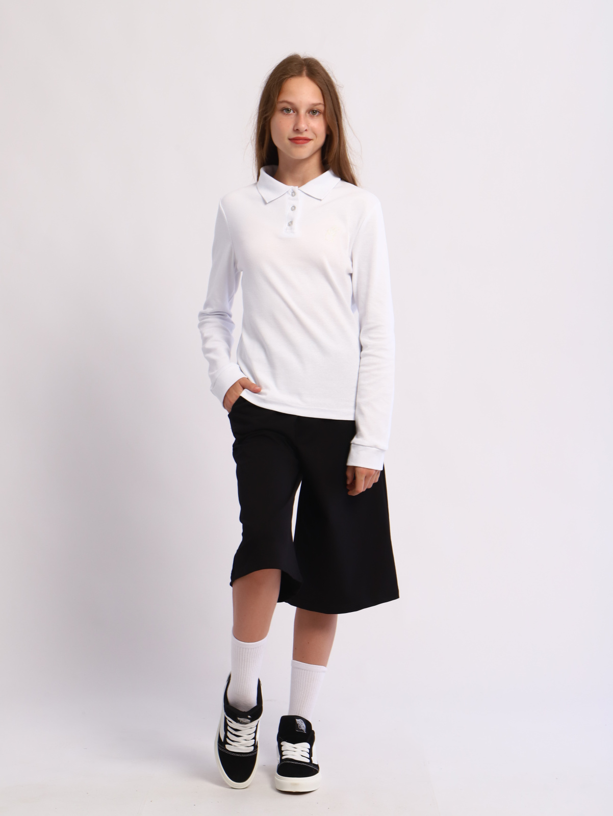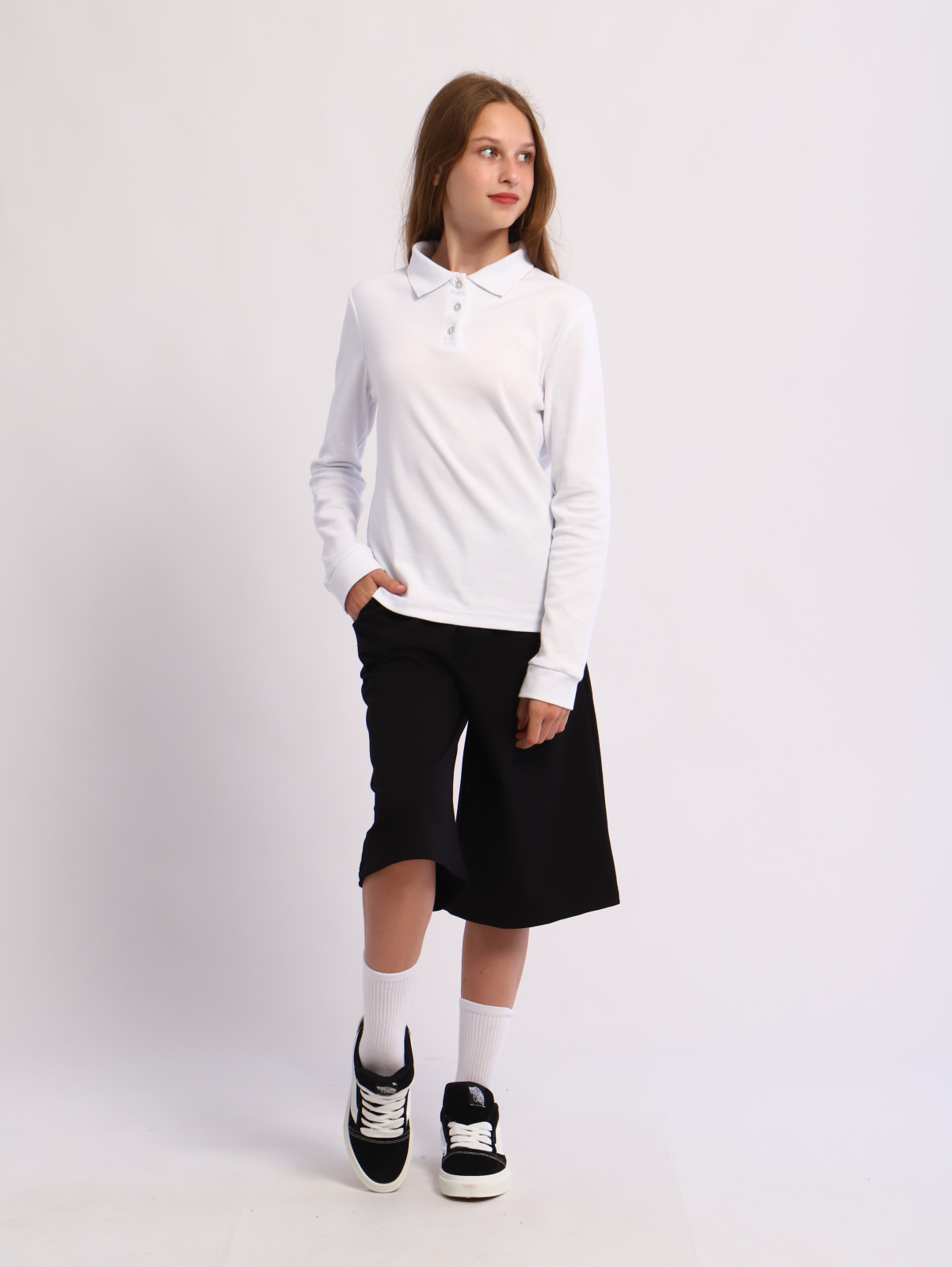 Универсальная рубашка - поло для мальчиков и девочек-подростков. Отличный базовый вариант школьного лонгслива! Эластичный высококачественный трикотаж рубашки не стесняет движений. Натуральный состав кофты для уроков обеспечивает комфорт. Короткие рукава поло с манжетами. На груди вышивка - заяц. Его изображение настроит наших учеников на победы в учебе! Детский лонгслив идеально подойдет в качестве школьной формы и для прогулок. Идеально для праздников, а также для дома и отдыха. Отличный подарок для подростков . Подростовый лонгслив отлично сочетается с бриджами и брюками. Выполнены в традиционной цветовой гамме - белого цвета. Школьная одежда, форма должна быть комфортной и удобной как эта кофта для мальчиков и девочек.