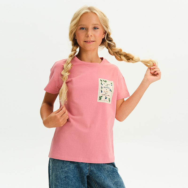 Состав: 95%хлопок 5%эластанОписание: Футболка для девочки из 100% хлопка — с принтом-этикеткой в стиле «деревенское лето» Удобная и дышащая футболка из натурального хлопка — отличный выбор. Мягкий трикотаж приятен к телу, не раздражает кожу и хорошо держит форму после стирки. Модель однотонная, с лаконичным силуэтом, комфортно сидит и легко сочетается с любыми элементами гардероба: шортами, юбками, сарафанами и джинсами. Изюминка футболки — небольшой принт в виде текстовой этикетки с атмосферной фразой: В горах ещё дожди, а у нас ещё прояснилось — тёплое настроение и нотка уюта в каждом слове. Идеальный вариант для тех, кто любит простой и стильный деревенский (cottagecore) образ, вдохновлённый природой и спокойствием. Не забывайте о выборе правильного размера. Используйте таблицу размеров на фотографии, чтобы выбрать подходящий вариант. Обратите внимание, что цвет товара на экране вашего устройства может отличаться от реального.