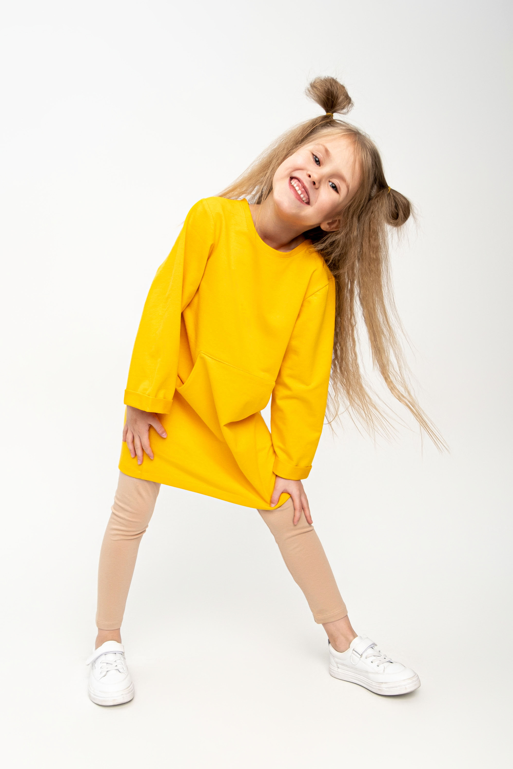 Повседневное платье-туника для девочки. Стильное платье выполнено из футера двунитки. Простое в уходе, легко стирается и утюжится. По мере роста ребёнка может носиться как туника с брюками.