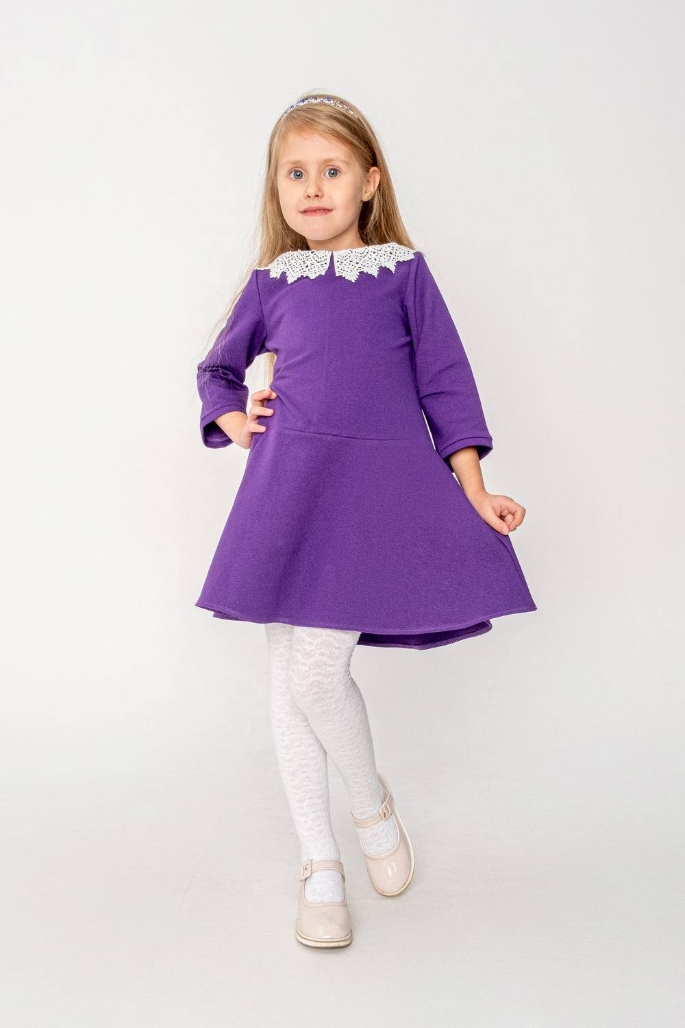 Классическое платье с кружевным воротником для девочки для особых случаев и для повседневного наряда. Стильное платье выполнено из трикотажного полотна двунитки, с кружевным воротником, с потайной молнией по спинке. Простое в уходе, легко стирается и утюжится.