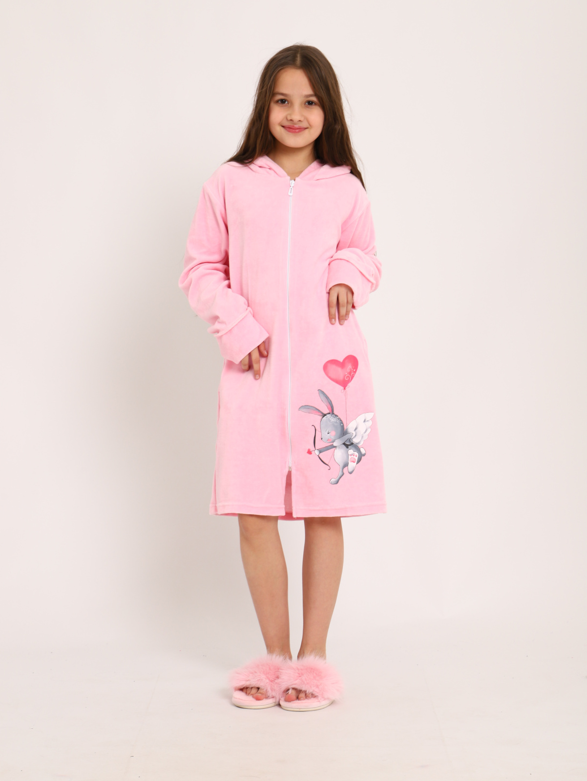 Оригинальный детский домашний халат из мягкого велюрового материала. Модель свободного кроя на молнии с крупным веселым принтом в нижней части, с удобным капюшоном , прорезными карманами по бокам. Халатик выполнен из комфортного велюра с хлопком ярких расцветок, практичного и приятного материала для домашнего использования. Материал заботится о том, чтобы вам было приятно выходить из ванной или душа, а ткань халата очень быстро высыхает. Халат отлично подойдет в качестве домашней одежды, а также в бассейне, после душа, бани. Согреет в прохладные вечера. Не линяет, не дает усадки и не требует глажки, сохраняет исходный внешний вид очень длительное время. Благодаря высокому качеству ткани, легкости в уходе и безупречному пошиву детский халат станет великолепным подарком для Вашего ребенка. Подарок внучке, дочке, племяннице, крестнице на День Рождения, на Новый год.