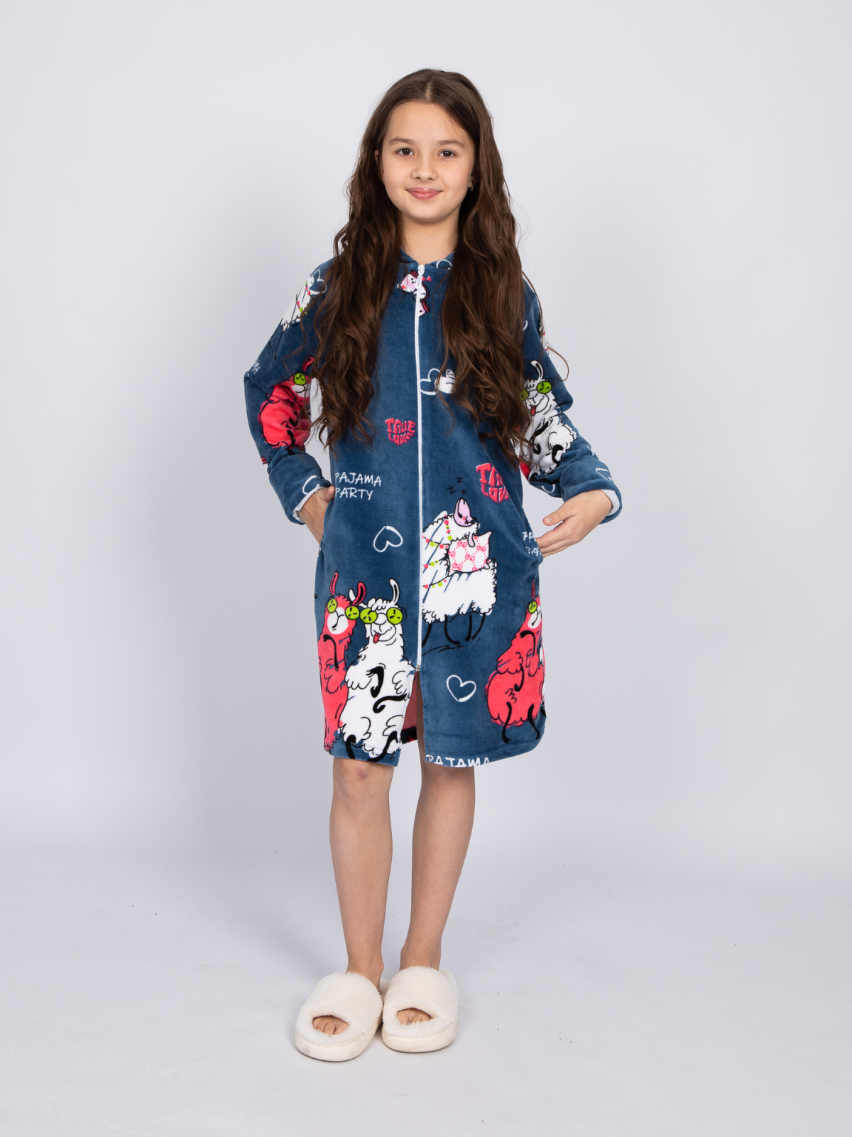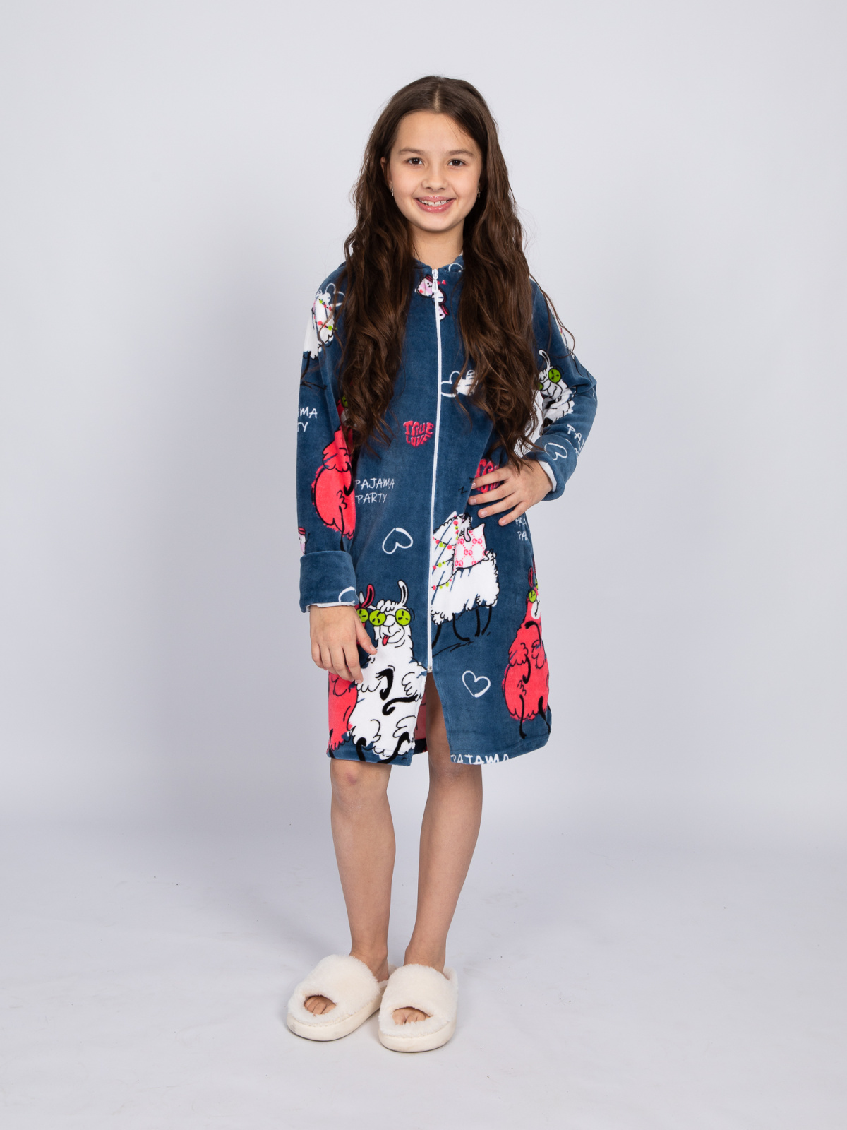 Оригинальный детский домашний халат из мягкого велюрового материала. Модель свободного кроя на молнии, с удобным капюшоном , прорезными карманами по бокам. Халатик выполнен из комфортного велюра с хлопком ярких расцветок, практичного и приятного материала для домашнего использования. Материал заботится о том, чтобы вам было приятно выходить из ванной или душа, а ткань халата очень быстро высыхает. Халат отлично подойдет в качестве домашней одежды, а также как вариант для бассейна, после душа, бани. Согреет в прохладные вечера. Не линяет, не дает усадки и не требует глажки, сохраняет исходный внешний вид очень длительное время. Благодаря высокому качеству ткани, легкости в уходе и безупречному пошиву детский халат станет великолепным подарком для Вашего ребенка. Подарок внучке, дочке, племяннице, крестнице на День Рождения, на Новый год.