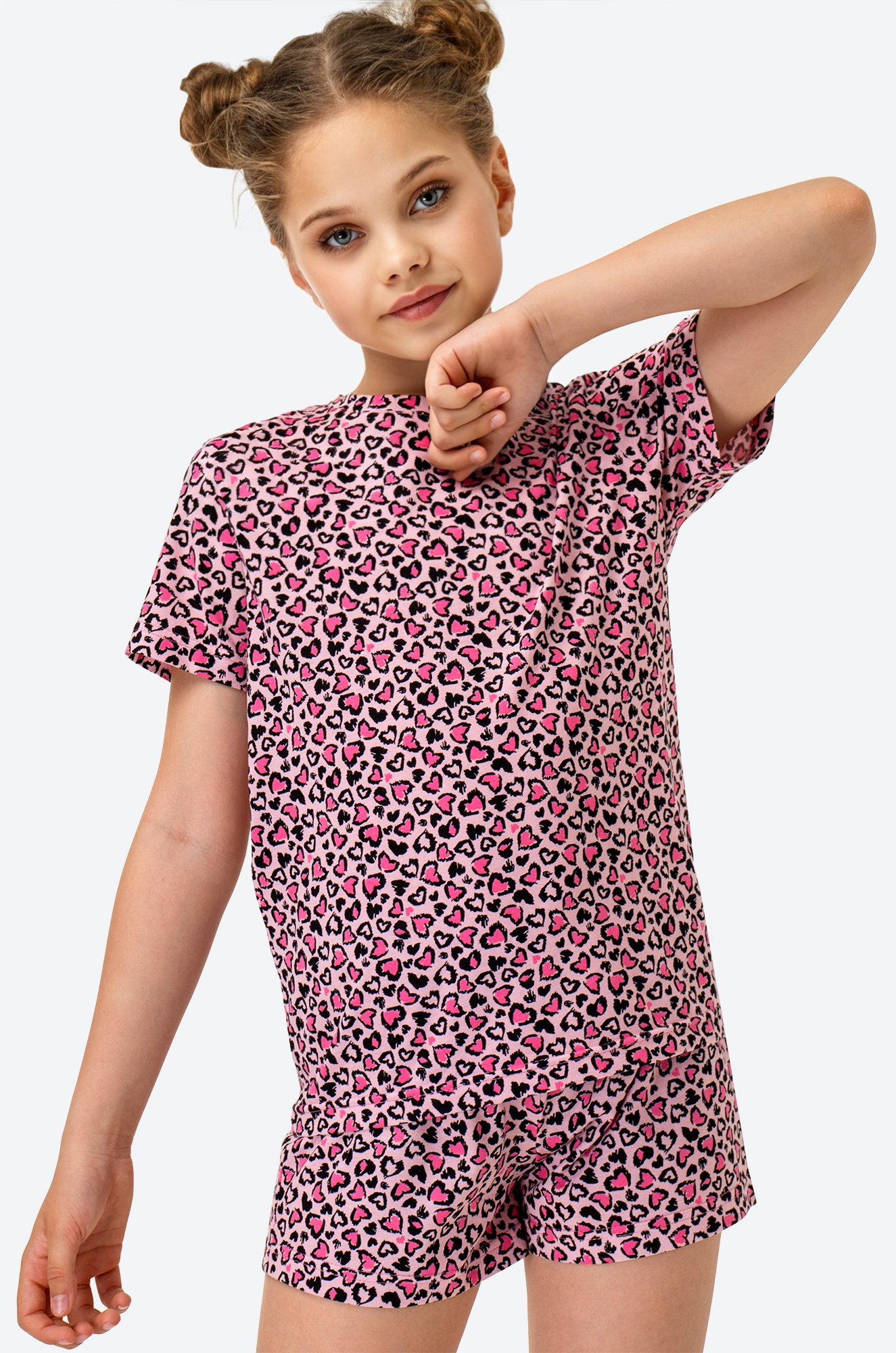 Детская пижама для девочек и девочек-подростков выполнена из натурального 100% хлопка. Прямой крой футболки, мягкая горловина, эластичная резинка шортиков – каждая деталь создана для комфорта ребенка. Благодаря милому принту сердечки, напоминающему леопардовые пятнышки, пижама для детей станет любимой деталью домашнего отдыха!