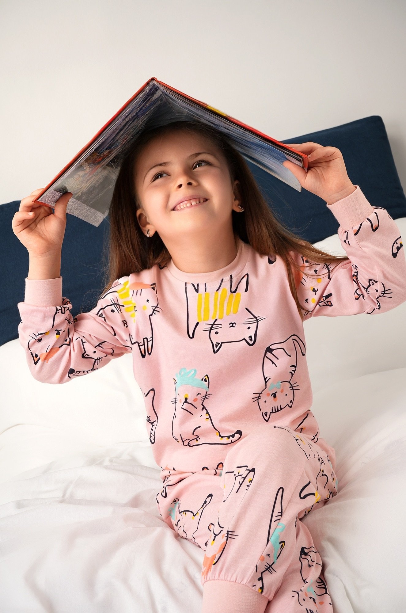 Мимими-эффект гарантирован! Розовая пижама с принтом Котики для девочки поднимает настроение с первого взгляда и создаёт уют с первой минуты. Детская пижамка — идеальный вариант на каждый день.