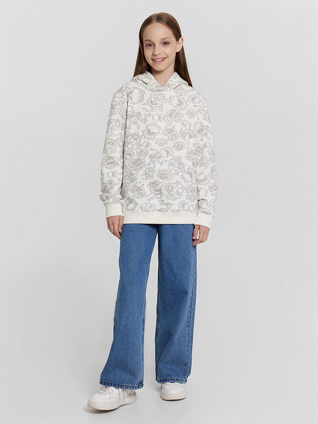 Худи для девочек кремовое с принтом