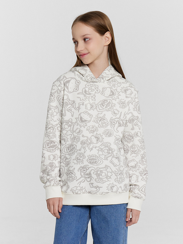 Худи из нежного футера с теплым подчесом. Силуэт прямой и свободный, рукава длинные на манжетах, линия плеча слегка спущена. Уюта добавляет просторный мягкий капюшон на подкладке. Отличный вариант с очень интересным дизайном!