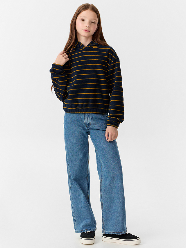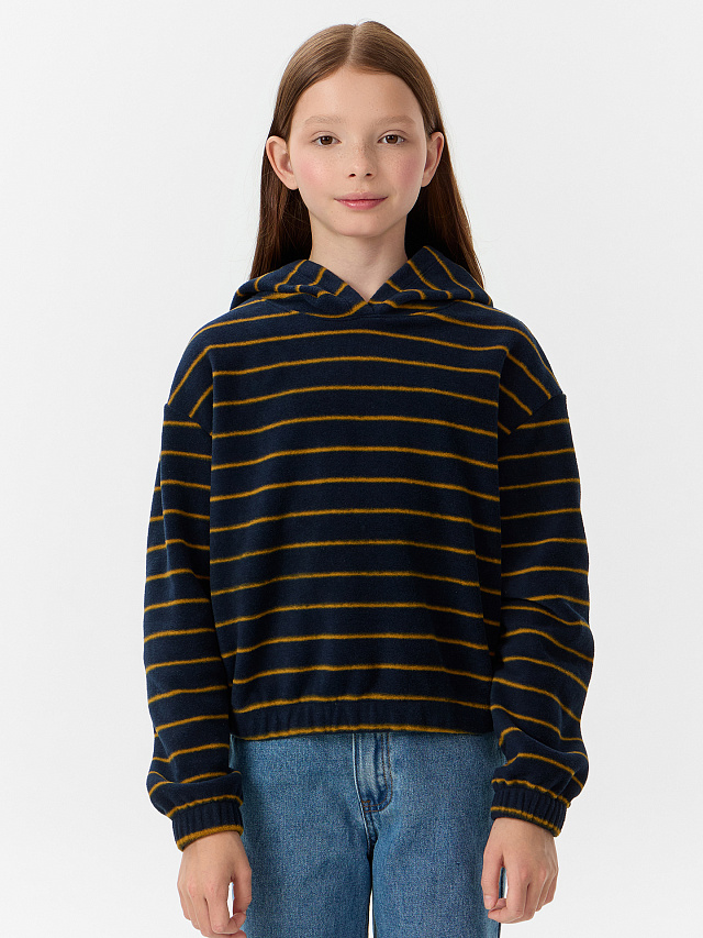 Худи для девочек синее в полоску