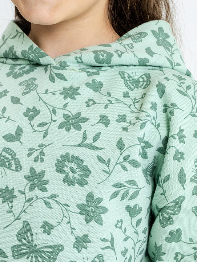 Худи для девочек светло-зеленое с принтом цветов