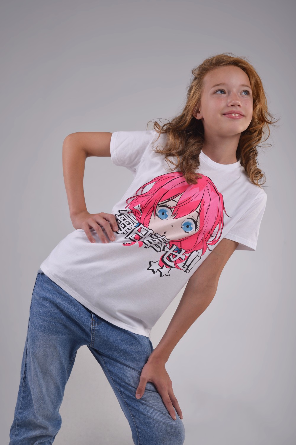 Футболка для девочки подростка белого цвета, свободного классического кроя, классической длины, модная, стильная, нарядная, озорная, аниме из мягкого хлопкового полотна 170 г/м2 с трендовым стильным неоновым принтом , выполненным в технологии вотер принт - нанесение рисунка безопасными сертифицированными красителями на водной основе, что позволяет изделию оставаться мягким, тонким и эластичным, долго сохранять яркость. Футболка с трендовым ярким принтом в стиле аниме, чрезвычайно популярном среди подростков, создаст неповторимый стильный образ, который позволит выглядеть модно и современно. Модель - 11 лет, рост 158 см, размер футболки на девочке - 158-164 см Цвет: белый; Материал: коттон;коттон; Состав: 100% хлопок.