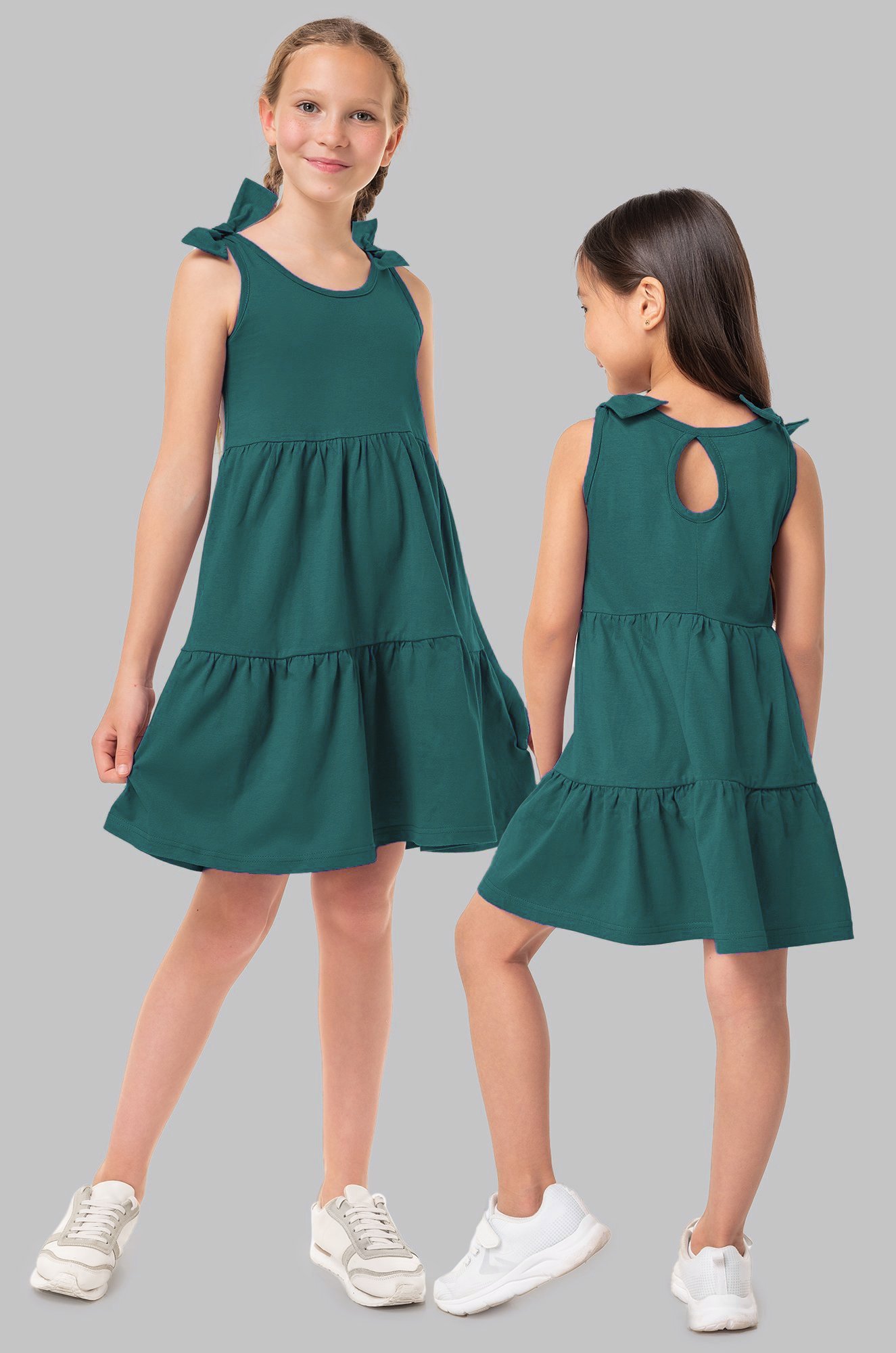 Однотонный зеленый сарафан из трикотажа подойдет для поездок, путешествий и активного отдыха. Подростковое платье идеально для повседневных прогулок.