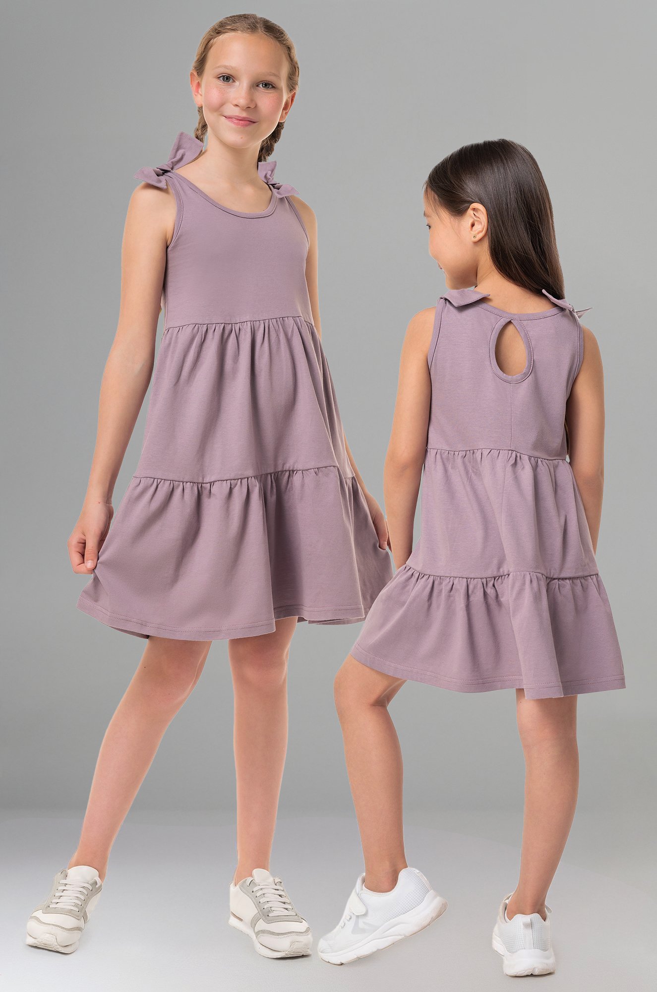 Детский сарафан для девочек и девочек-подростков выполнен из натурального 100% хлопка и представлено в оттенке какао. Свободный крой, вырез капелька на спинке, кокетливые завязки на плечах – каждая деталь создана для комфорта ребенка. Благодаря воздушным сборкам летнее платьице для детей поможет создать классный образ.